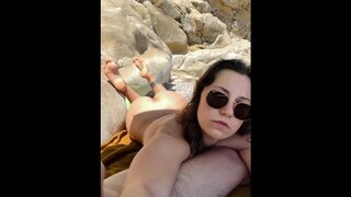 Pretty girl fucks herself with a new toy while a guy fucks her mouth
