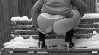 Pissing on snow pushing panties