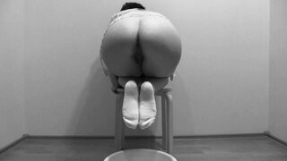 Pissing on the feet in socks mature milf with a beautiful booty.