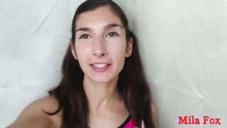 Shaking his tall girlfriend after college! Cute beautiful college girl sucks cock and swallows cum!MikeGSparda