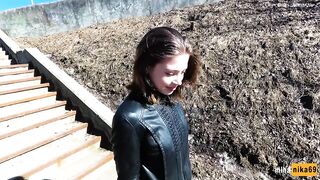 College Student Sucking on a Mountain Walk. Public Blowjob & Cum in Mouth.