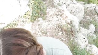 Risky Outdoor Blowjob on the Mountain while Hiking