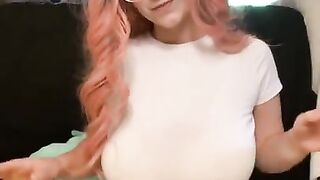 Tanned with big Breasts – BigTittyGothEgg Fucks herself with a Dildo in a standing positionBigTittyGothEgg